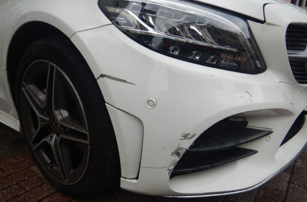 羅男車子上都是擦撞痕跡,百口莫辯。(記者孫義方攝)
