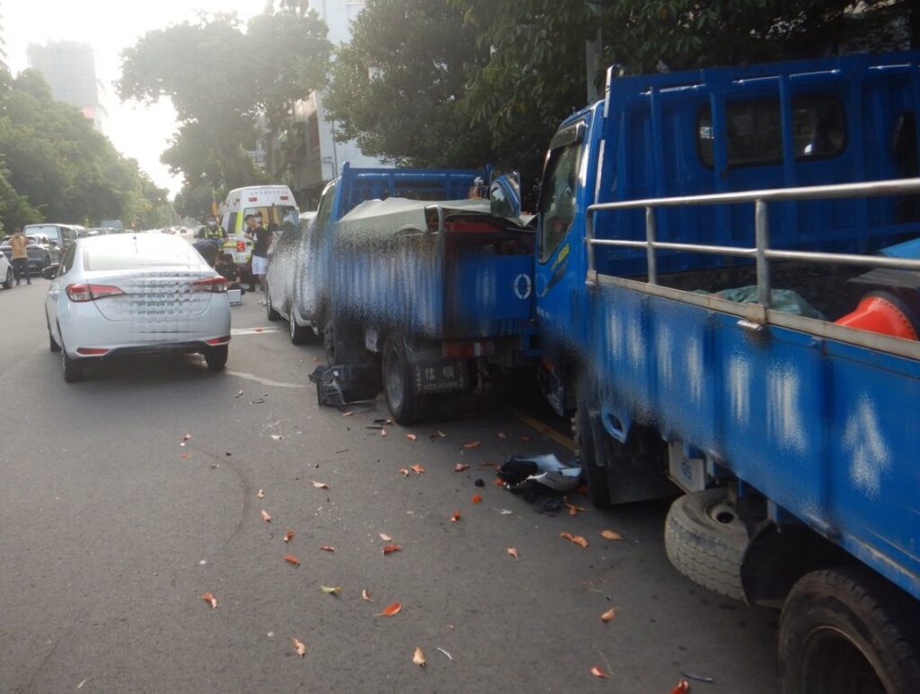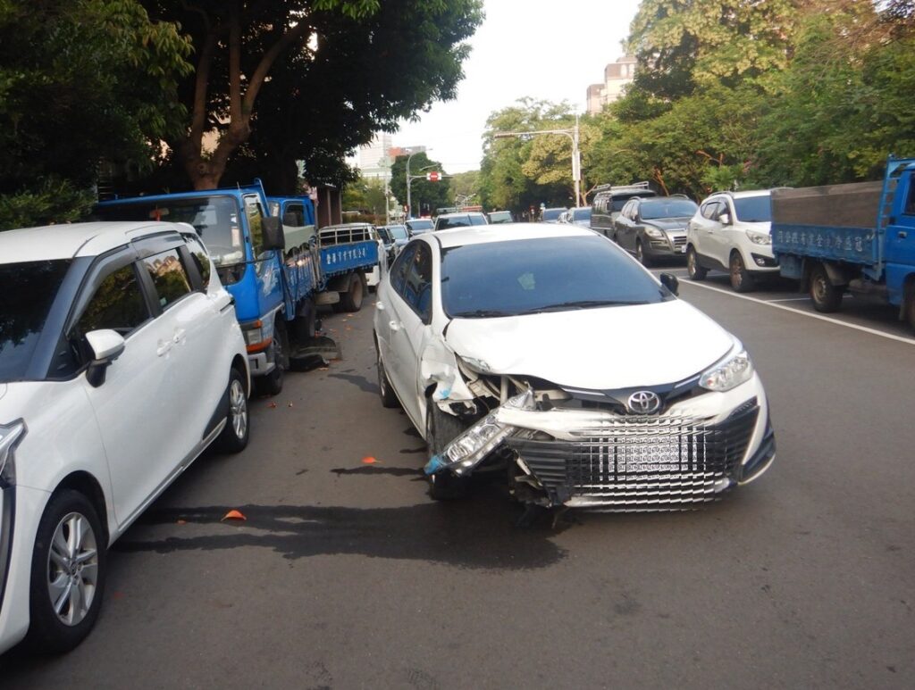 據調查,二十七日清晨六時二十九分,發生在北區育德路上,涂男自華中街沿育德路往篤行路方向行駛,疑分心邊看導航邊開車,加上酒精影響判斷力,整輛車突然失控向右偏移,先後撞擊兩輛停放在路旁、未發動的小貨車,所幸當時車內都沒有人,沒有造成其他人員傷亡。