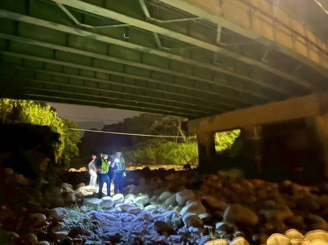 男子台中東勢石圍橋下釣魚未歸,家屬急尋竟發現人躺河床已氣絕。(記者孫義方攝)