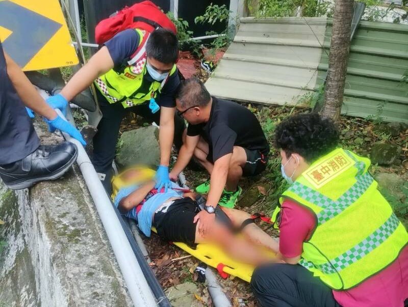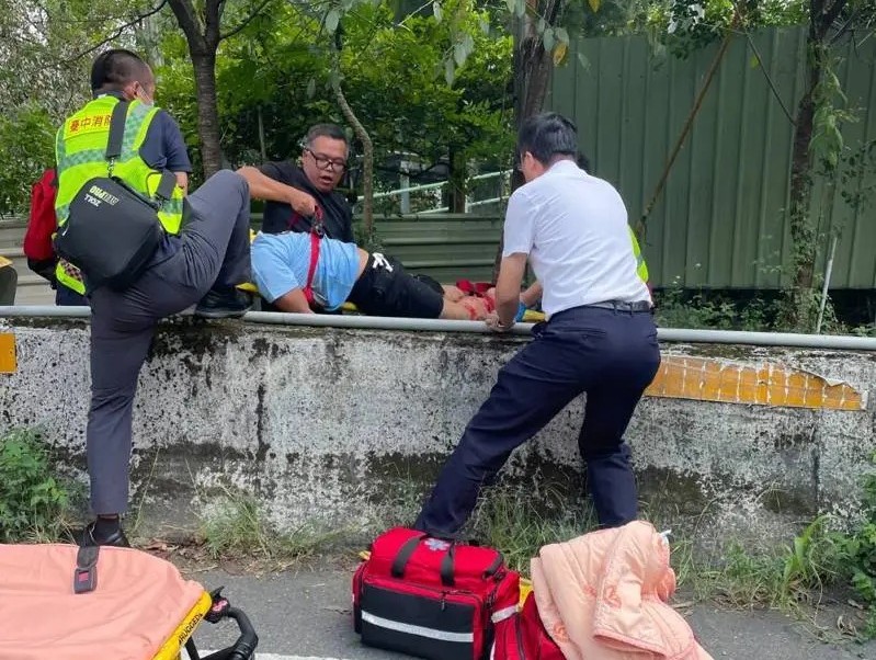 車禍發生時,後方有轎車駕駛看到騎士自撞,人噴飛消失後,多位駕駛停車查看,光田醫院向上院區緊急救護組救護員林俊良開車經過,看到前方車禍下車急救,先打一一九,接著評估患者狀況並做CPR(心肺復甦術),再等消防隊救護車到場。