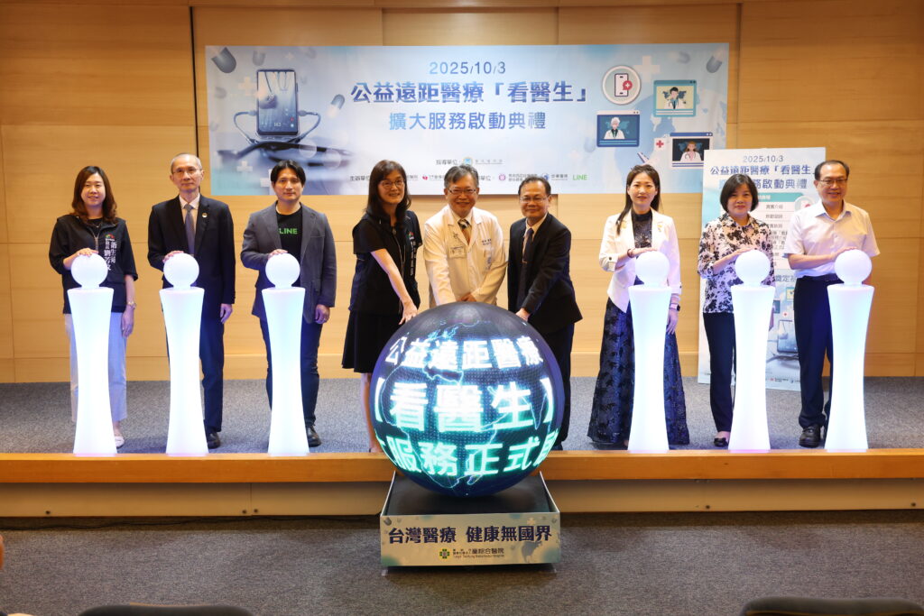 童醫院「公益遠距醫療『看醫生』擴大服務」啟動大合照。(記者孫義方攝)
