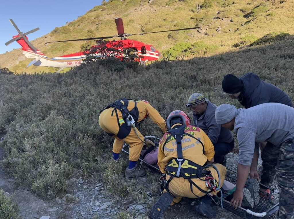 華女攀登南湖大山跌倒骨折,空勤出動直升機救援。(記者孫義方攝)