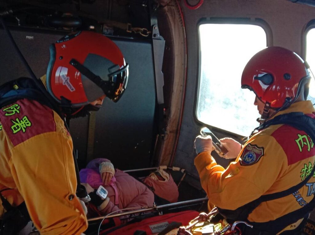 空中勤務總隊臺中清泉崗駐地勤務第二大隊第三隊,於五日晨間接獲總隊勤務指揮中心電話通知,執行臺中市和平區南湖山屋華姓女登山客登山途中不慎跌倒,造成膝蓋開放性骨折無法行走,申請空中救援。
