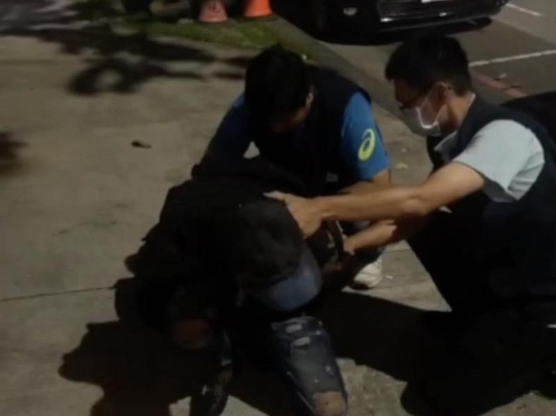 六日晚間六時許陳男在五權車站附近建國南路被捕。(記者孫義方攝)