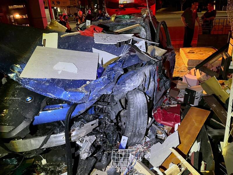 警方調查,劉姓男子(四十三歲)九日凌晨三時許,駕駛BMW自小客車,自南屯區五權西路一路直行,抵達事故地點前的Y字型路口時,突然高速闖紅燈,衝過馬路撞進茶葉行,撞擊瞬間爆出巨大聲響,茶行鐵門被撞飛、店內撞得滿目瘡痍。