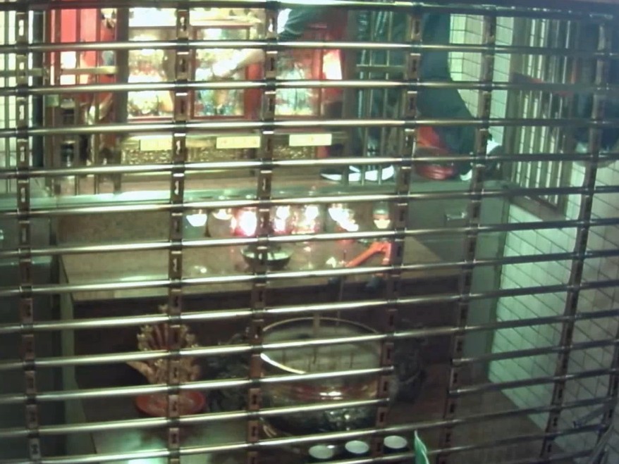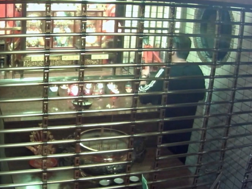 竊嫌呂姓男子,持油壓剪剪斷鎖頭後,爬進神龕開始偷竊金牌。(記者孫義方攝)