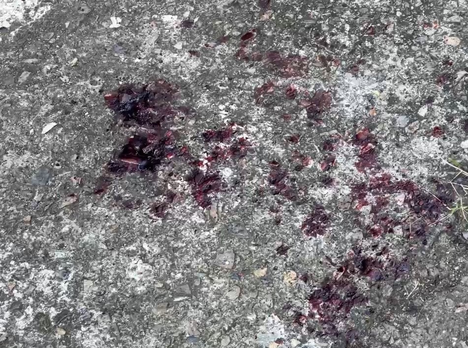 現場樓梯間及樓下大門血跡斑斑,畫面怵目驚心。(記者孫義方攝)