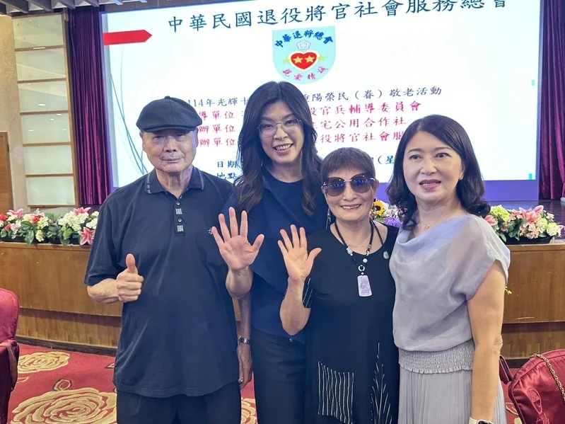 中華民國退役將官社會服務總會總會長楊學仁(左二)公開表示,經過DNA的鑑定,「鄭麗文果然是我們黃復興的這一塊」。(記者呂雪蘋攝)
