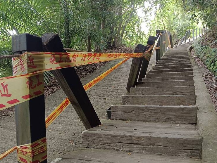 市府觀旅局表示,因今年七月底的大雨造成多條步道受損,相關料件供應不足造成修復延宕,目前已經在備料中,已完成派工,預計十月底前就可完成修復。