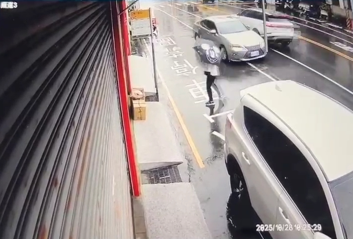 台中第三分局調出路旁民宅監視畫面發現,何男二十八日上午十點五十二分開自小客車沿高工路,不明原因慢慢逆向行駛,他的車子在逆向車道先停止不動數秒,然後又啟動向前,並與林姓男子駕駛的銀色Lexus碰撞,再撞倒路邊的機車,隨即撞入鐵板燒店向外的落地鋁門,車頭凹陷,警消到場搶救時發現何已經明顯死亡。