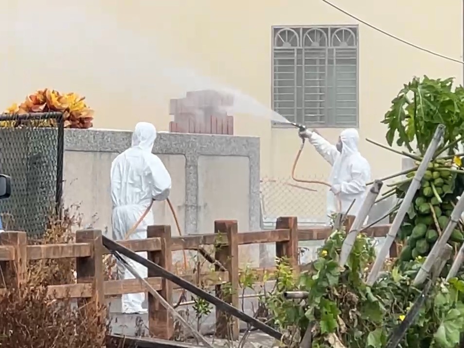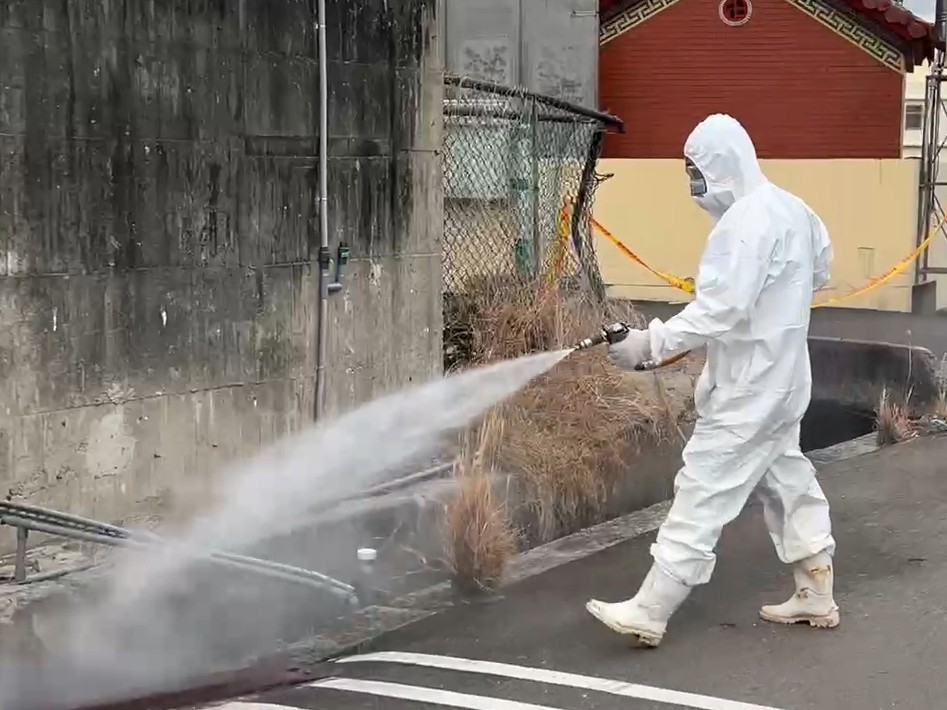 台中梧棲養豬場爆發非洲豬瘟疫情,市府於豬場周邊消毒亡羊補牢。(記者孫義方攝)