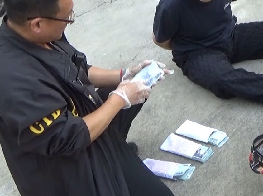 警方逮捕詐團成員,查扣現金新台幣一百十四萬七千九百元。(記者孫義方攝)