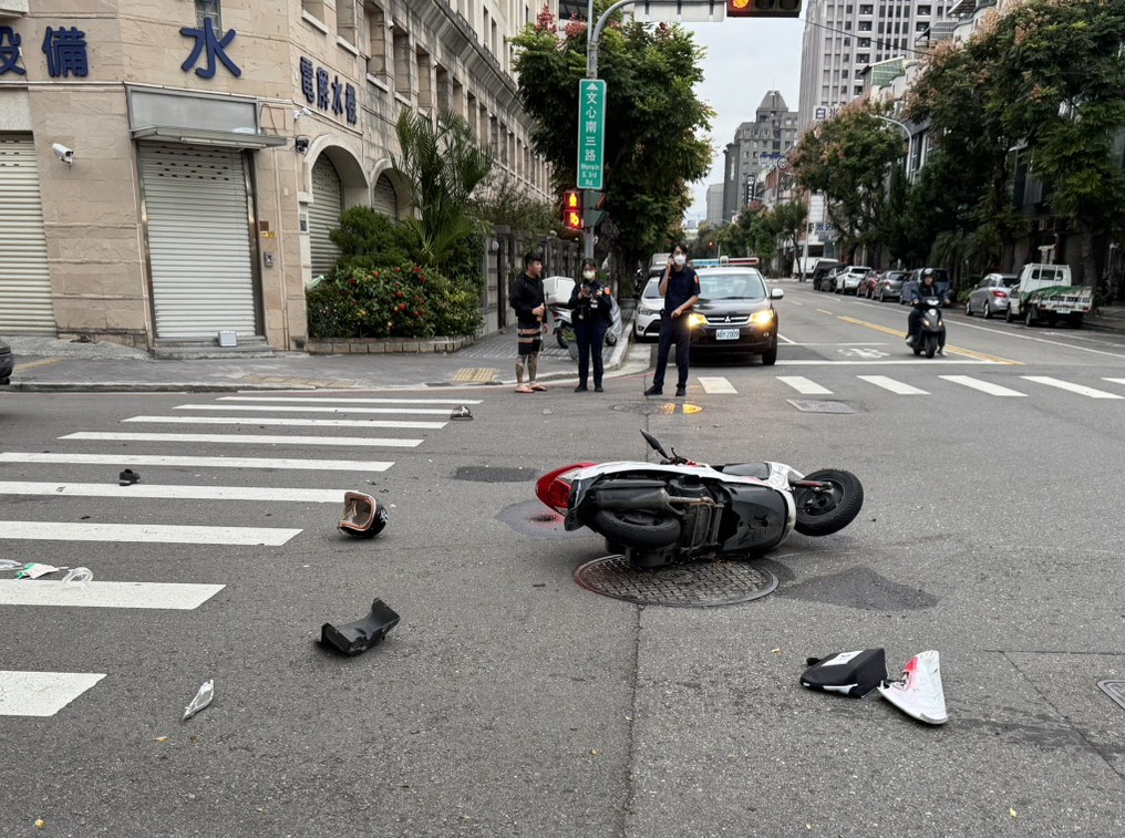 這起死亡車禍發生在二日清晨近五時五十八分許,五十九歲劉女當時騎乘機車沿文心南三路內側快車道往向心南路方向行駛,號誌為閃紅燈,二十四歲林姓男子則是駕駛休旅車沿永春東一路快車道往永春東路方向前進,號誌為閃黃燈,兩車疑未注意車前狀況及禮讓,於文心南三路與永春東一路口發生碰撞。
