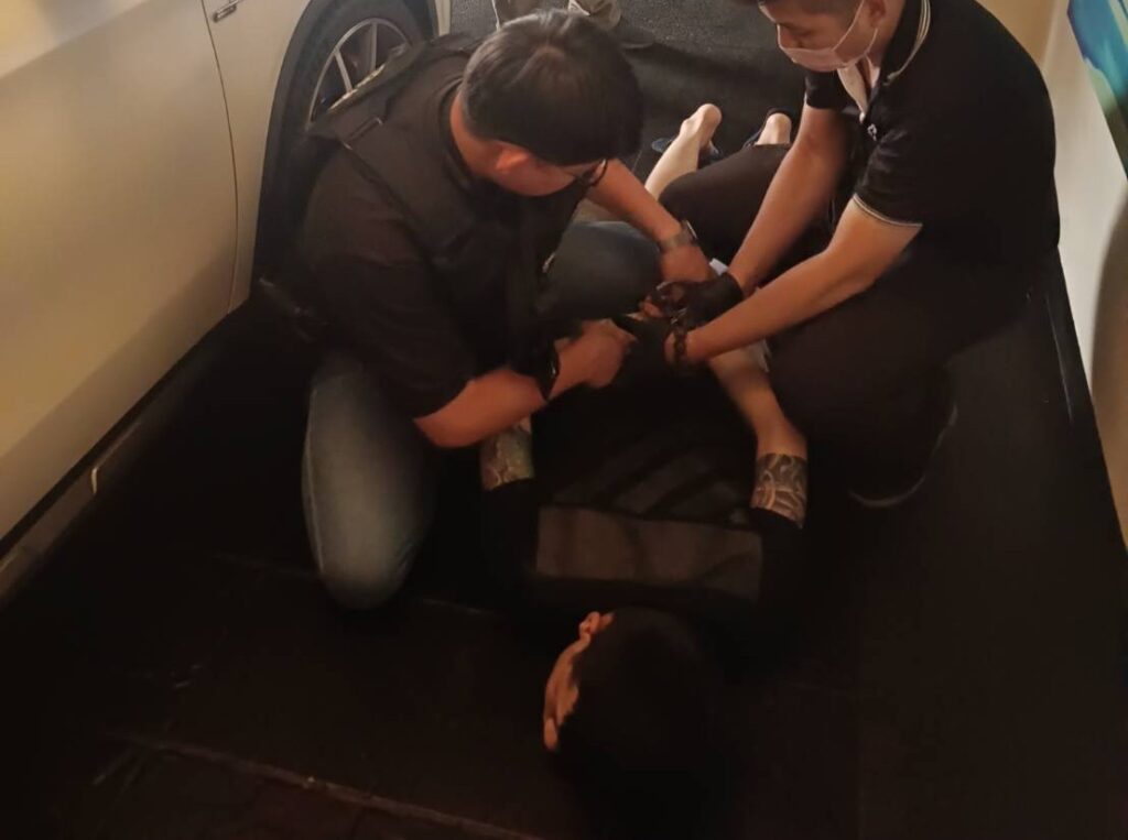 霹靂小組攻堅張男被壓制逮捕。(記者孫義方攝)