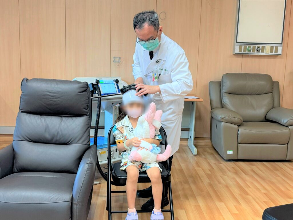 蔡森蔚主任為瑤瑤做經顱磁刺激。(記者孫義方攝)
