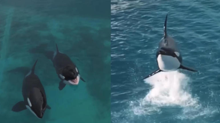 無人機飛入法廢棄樂園 兩隻虎鯨「聞聲突開始表演」揪心畫面曝