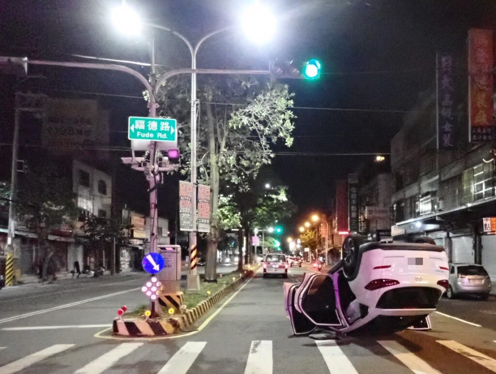 女駕車自撞分隔島翻覆 與乘客皆輕傷自行脫困