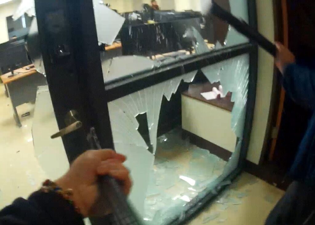 警方循線破門查緝博弈網站。(記者孫義方攝)