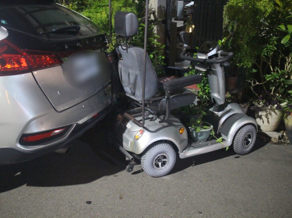〔記者孫義方台中報導〕台中二十五歲賴姓男子,日前開車前往南區工學路,不慎撞上吳姓女子停在家門前的電動輔具車,再往前推撞停在前面的自小客車後保險桿,賴男肇事後雖一度下車,但沒有處理就離開,吳女接獲鄰居通報向警方報案,員警獲報調閱監視器,揪出是賴男的賓士車肇事,賴男一開始否認,直到警方拿出監視器畫面才坦承,依肇事逃逸開罰。