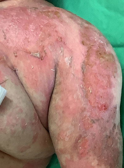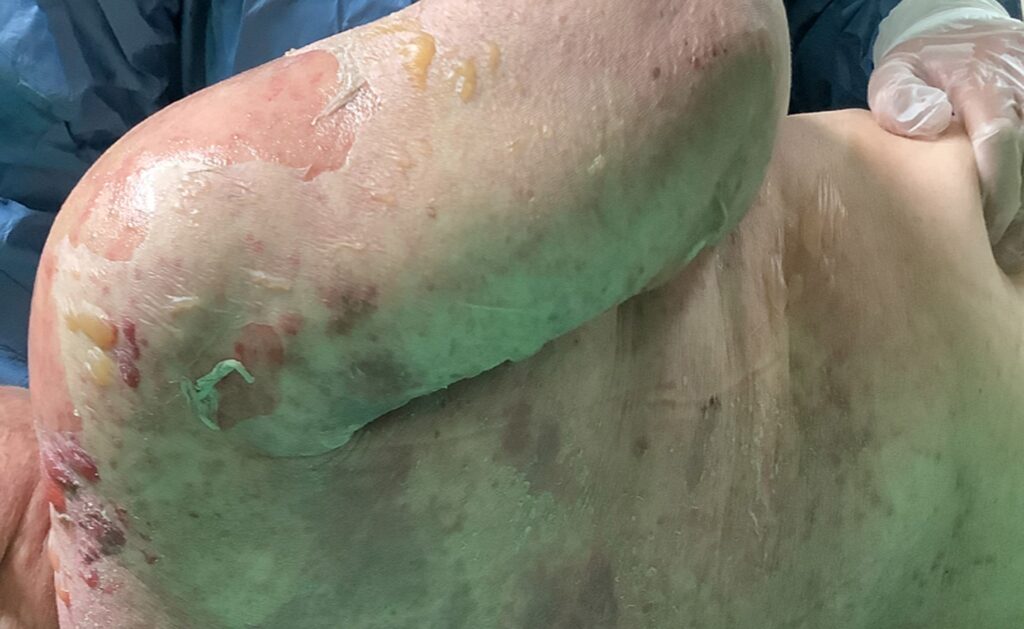 罹患史帝文強生症候群的病人全身會出現紅疹與水泡,死亡率達二至三成。(圖非個案本人)。(記者孫義方攝)