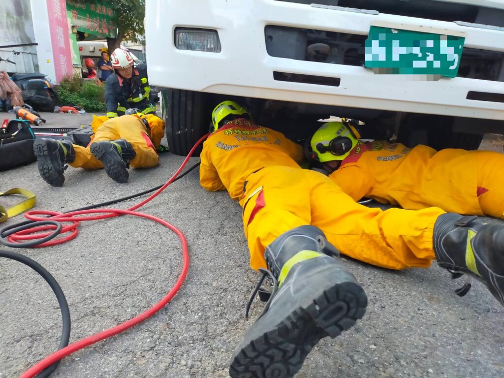 消防局獲報後,派遣東山分隊小隊長張健峰帶隊前往,出動東山消防分隊等多個單位到場,消防人員使用氣動式頂舉器,將受困車底的古女、羅女救出,不過古女因頭顱被貨車壓到變形,已明顯死亡,羅女則多處撕裂傷,眼部擦傷,意識清楚,送醫急救。