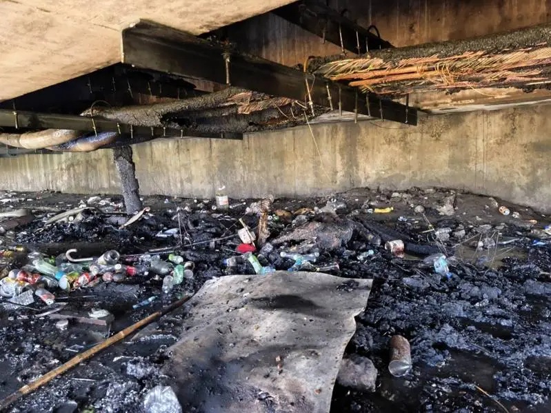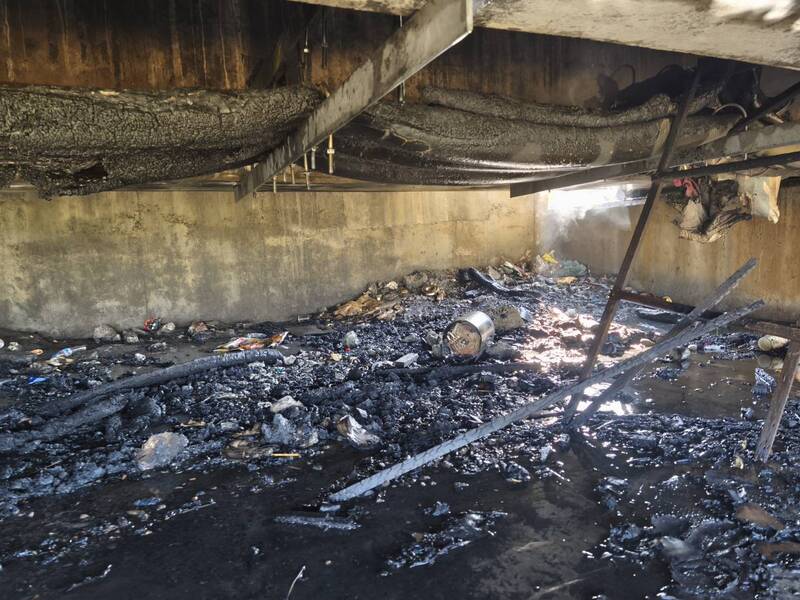 台中大里西柳橋下二十四日上午傳火警,火滅後現場發現一具男焦屍,死因檢察官相驗釐清中。(記者孫義方攝)
