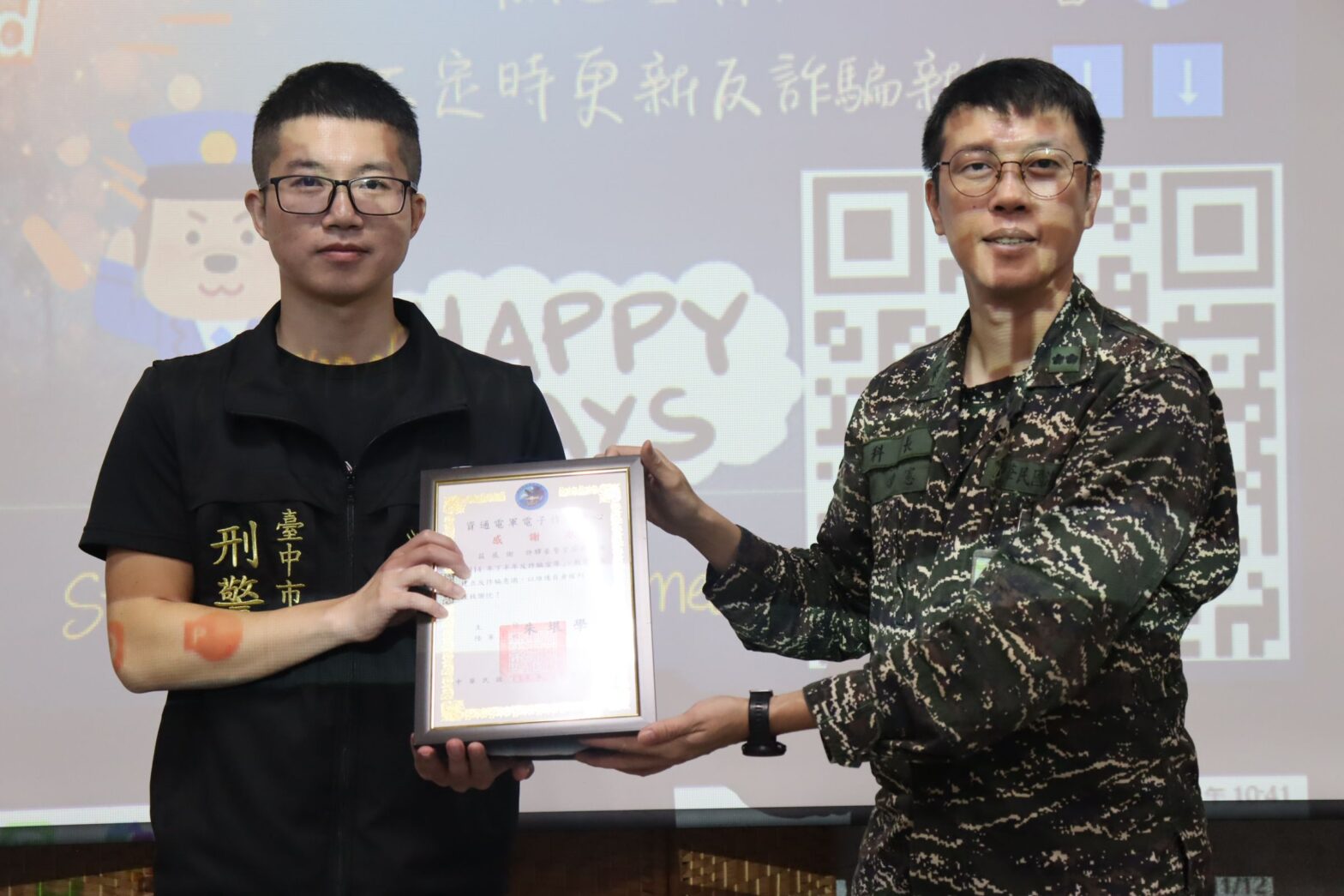 【記者鄧力軍/台中報導】為強化青年族群與國軍官兵的反詐意識,臺中市政府警察局第五分局偵查隊隊長謝志遠及巡官許驛豪,接力受邀出席替代役與國軍的識詐及防詐講座,以輕鬆、詼諧且貼近生活的方式,揭開各種詐騙話術的真面目。