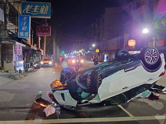 酒駕撞二車當街翻覆四輪朝天 醉駕女自行脫困衝路旁狂吐