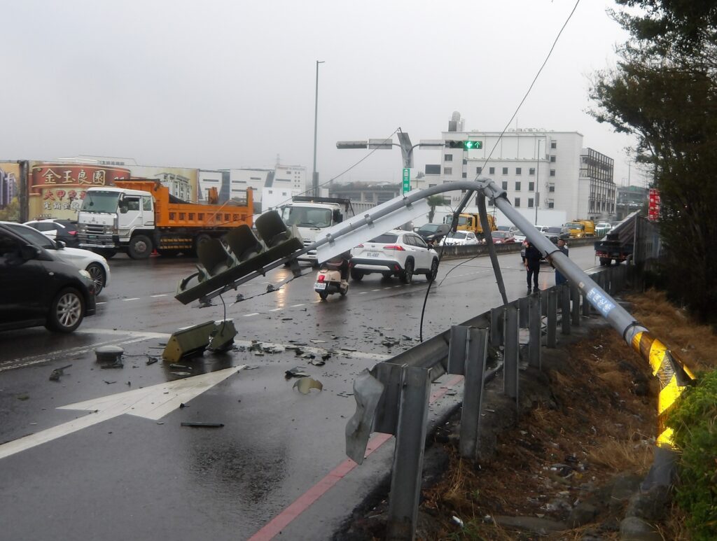 大甲警分局調查指出,這起車禍發生在一日上午七時十一分許,黃姓男子駕駛轎車往大甲方向,行經外埔區甲后路近三環路口,不慎自撞路口號誌桿,致號誌桿斷裂,電纜線垂落,當時楊姓男子駕駛大貨車沿甲后路往水美路方向行駛,車上載運的貨物勾纏到電纜線,致路口另一側號誌桿也遭拉斷傾倒。