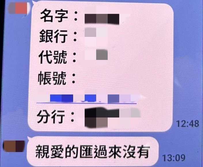 女網友傳男性帳戶要求匯款。(記者孫義方攝)