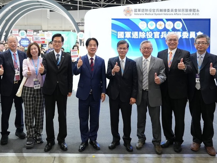 總統賴清德(左四)至退輔會榮民醫療體系展場參觀。(記者孫義方攝)