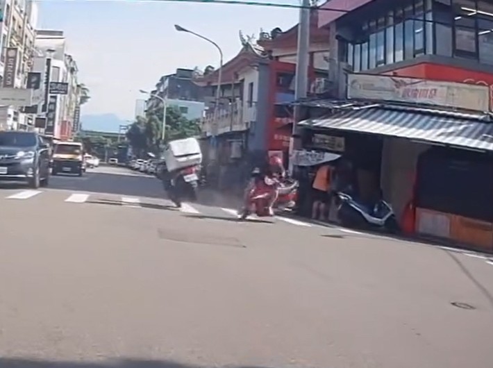〔記者孫義方台中報導〕台中市一中商圈五日下午發生一起機車碰撞事故,畫面迅速在網路瘋傳引爆熱議,影片中可見,一輛直行的快遞員機車行經育才北路時,突有另輛機車在路口快速左轉,宛如「鬼切」般切入車道,雙方毫無緩衝空間,下一秒便重重撞上,兩名女騎士當場倒地,場面怵目驚心。