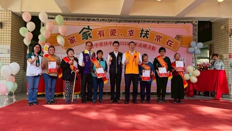 北台中家扶七日在台中清水高中舉辦「歲末送暖」活動,表揚自強祖父母。(記者孫義方攝)
