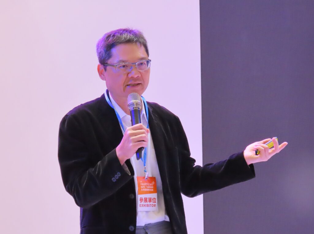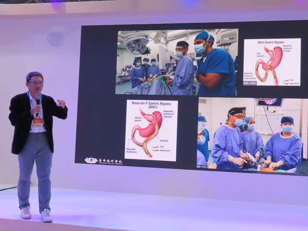 李旻憲主任在台灣醫療科技展演講「減重手術後之照護」,說明兩個臨床減重案例。(記者孫義方攝)