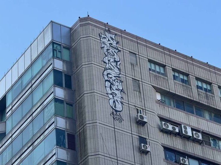 記者走訪現場觀察發現,兩面塗鴉分布在該大樓的高樓層無窗外牆磁磚立面,從頂樓往下延展起碼約五到六個樓層,周邊沒有明顯外凸平台或可站立空間,附近窗戶與冷氣室外機位置亦不足以支撐長時間作畫,且塗鴉線條縱橫向都有延伸、結構完整,顯示塗寫過程中身體相對穩定,並非單點探身隨意噴漆可完成,完成此種高空塗鴉,堪稱玩命。
