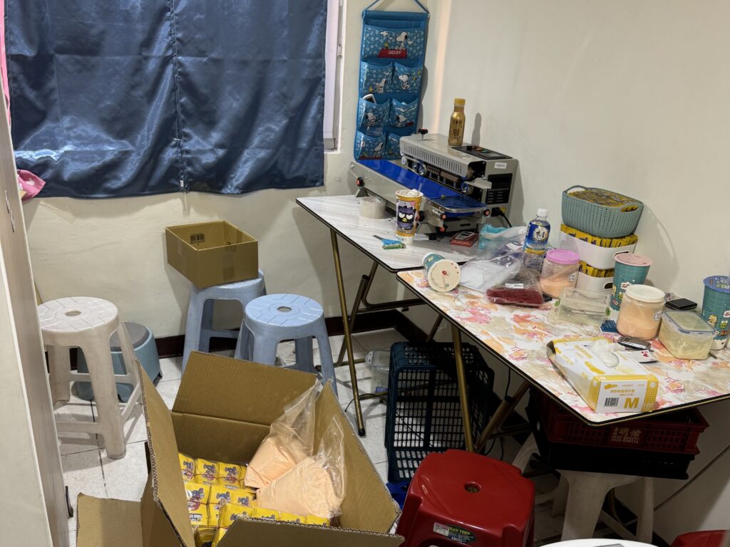 據調查,李男與妻小承租大里區一處社區大樓居住,卻長期獨占其中一間房間,不僅上鎖,還禁止妻子開門查看,家人半年來只知道房內「整天開窗、電扇狂吹」,卻從未想過竟是毒品製作分裝現場。
