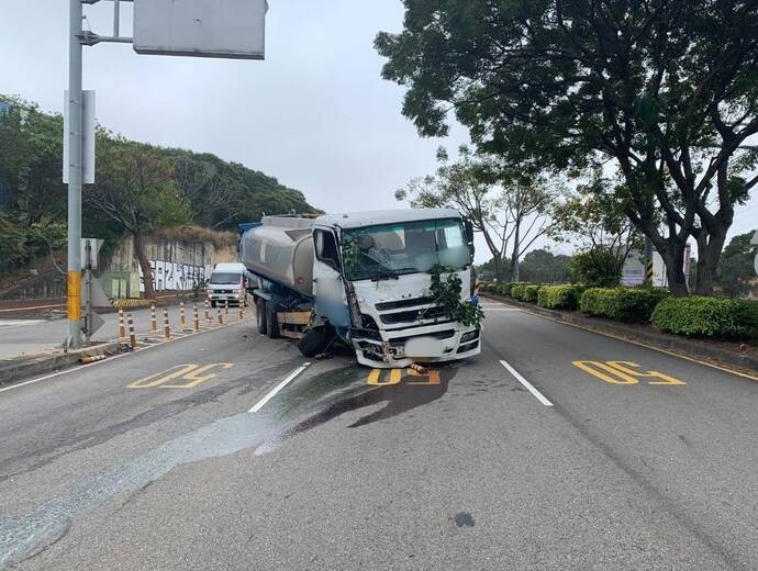而事故造成油罐車前擋風玻璃破裂、前輪扭曲變形,車頭嚴重受損,甚至卡著被撞斷的路樹樹枝,警方於下午一時四十五分完成拖吊與路面油汙清理,恢復全線通行;烏日分局呼籲,駕駛人停車時除應打入停車擋外並應一併使用手煞車,以免因地勢高低等因素造成車輛滑動,而危及其他用路人行車安全。