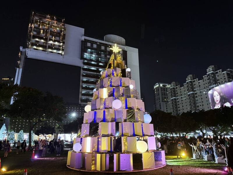 台中好聖誕九米主燈,二十一日晚首次點亮廣場夜空。(記者孫義方攝)