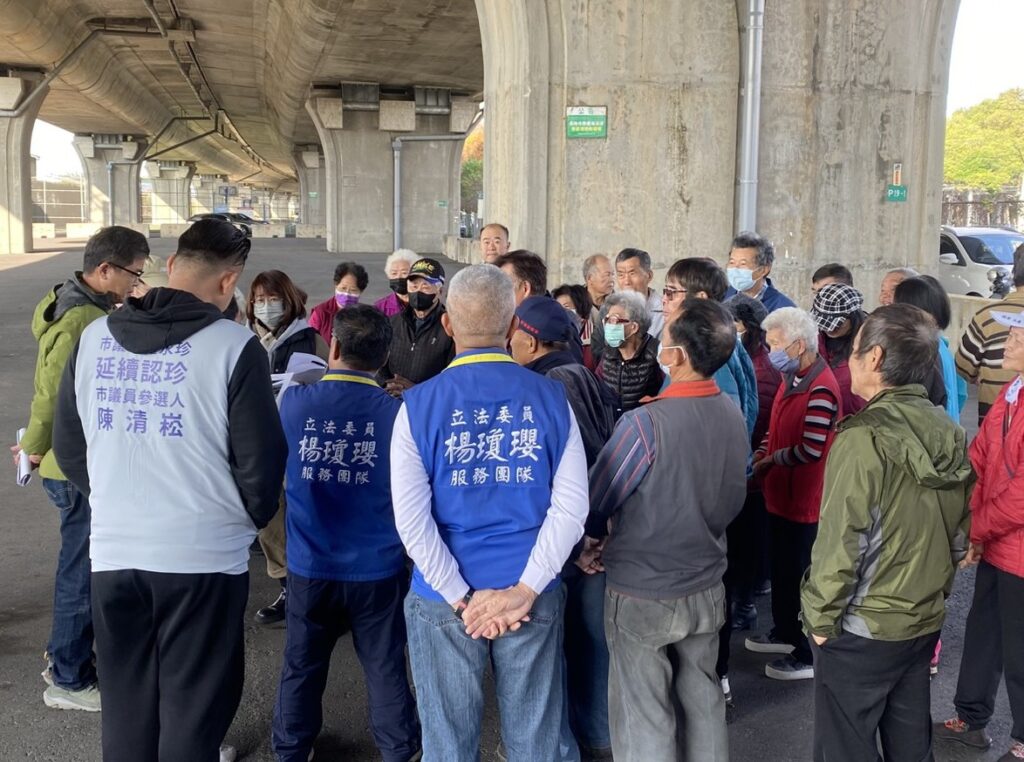 立委楊瓊瓔、台中市議員羅永珍五日辦理「國道四號高架道路下逕予出租溪洲里環保資收站使用現勘協調會」。(記者孫義方攝)