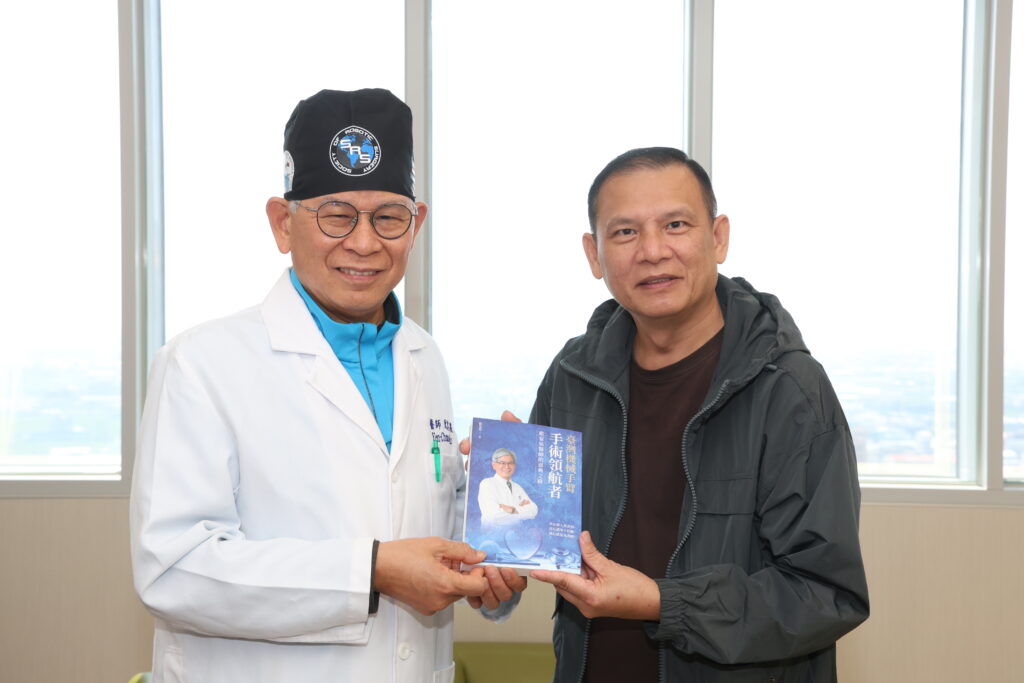 研發創新中心院長暨泌尿科歐宴泉院長(左一)贈送專書祝賀鍾先生出院。(記者孫義方攝)