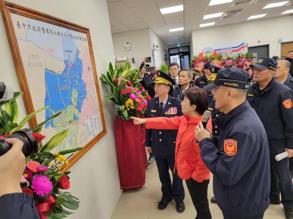 〔記者孫義方台中報導〕台中市大雅分局六寶派出所辦公廳舍九日舉行新建工程落成典禮,台中市長盧秀燕主持剪綵儀式指出,六寶派出所所在區域鄰近中部科學園區、台中國際機場與沙鹿交流道等交通要衝、產業蓬勃發展,因此,新派出所的設立與廳舍的建置,不只是地方期待,更是維護治安與提升服務品質的必要一步。