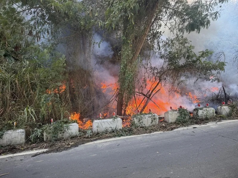 神岡區國四六公里處下方往西方向傳邊坡傳雜草燃燒火警,影響行車安全。(記者孫義方攝)
