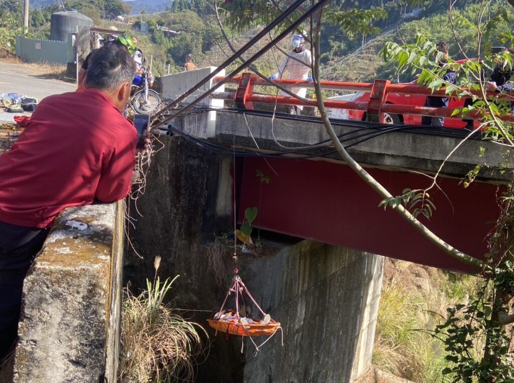 消防隊員到場回報,現場為機車騎士跌落橋下約三丈深,人員下去確認初步評估傷患,七十三歲男子已無呼吸心跳、左額頭一處撕裂傷,將傷者吊掛至路面,給予必要急救處置後由雙崎消防分隊救護車送往東勢農民醫院救治,不幸仍重傷不治。
