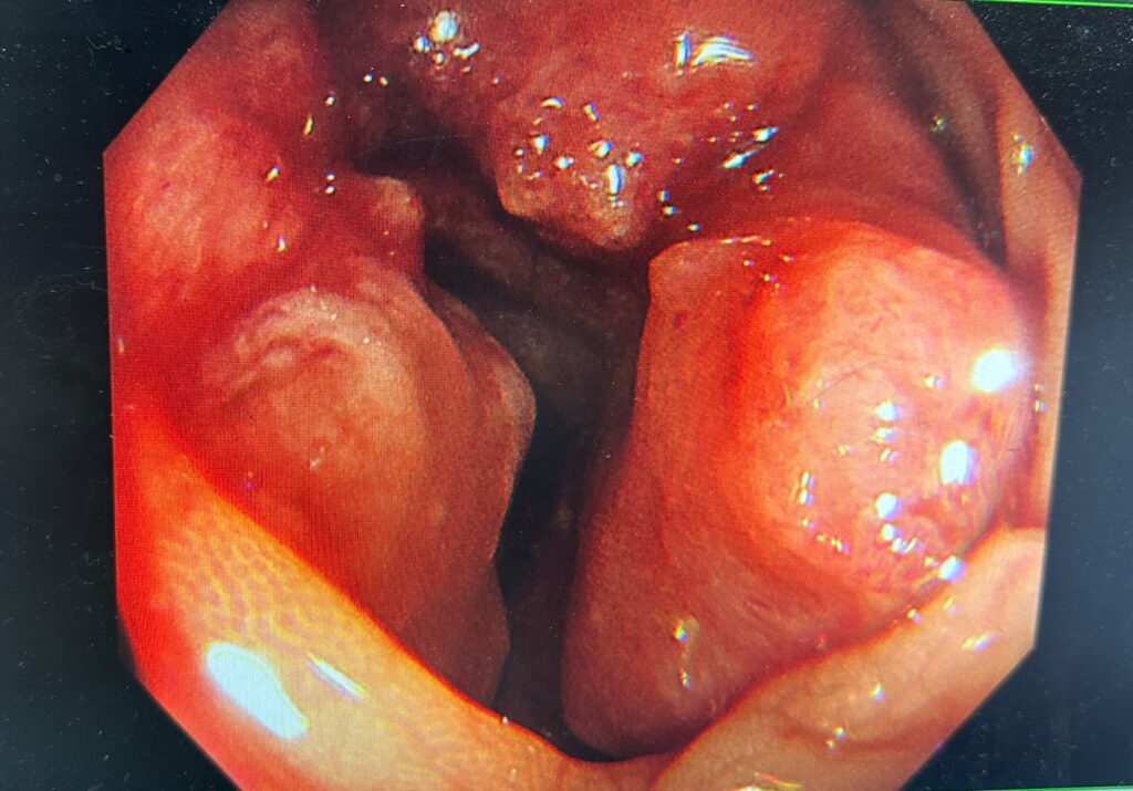〔記者孫義方台中報導〕四十四歲的王男因長期解血便卻不在意,還自行判斷是痔瘡上身,近來因症狀持續未改善,在家人催促下前往豐原醫院腸胃科求診,腸胃科主任黃泰銘指出,這名個案具有明顯大腸癌相關家族史,爺爺曾罹患大腸癌,父親亦有大腸腺瘤性瘜肉病史,加上平日以外食為主,屬於大腸癌高風險族群,患者接受舒眠麻醉大腸鏡檢查,經檢查結果顯示,腸道內發現約三公分腫瘤性病灶,外觀高度懷疑惡性,並合併內痔出血情形,後續已安排病理切片檢查,並安排腫瘤切除。