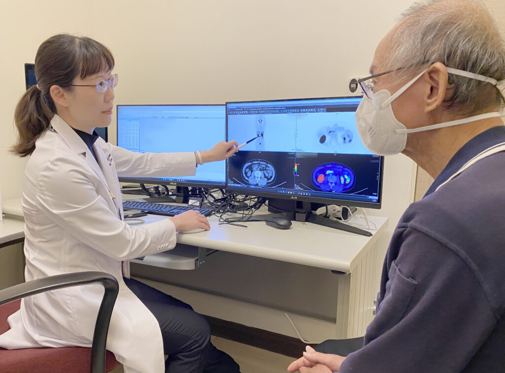 所幸泌尿醫學部和核子醫學科為他安排最新的PSMA正子斷層掃描檢查,發現下腔靜脈旁有多顆高位淋巴結轉移,給予口服藥和放射線治療後,目前PSA指數正常(< 零點零二五ng/mL),高先生生活如常也終於放下心中大石。