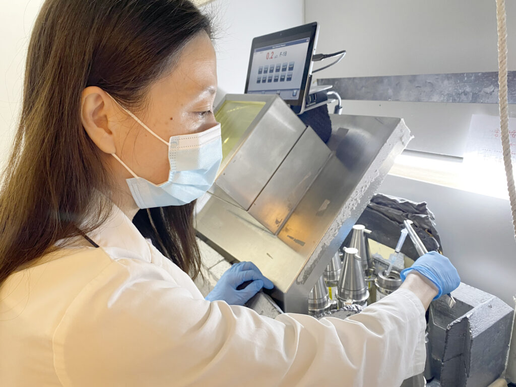 醫事技術師處理PSMA正子斷層掃描顯影劑。(記者孫義方攝)