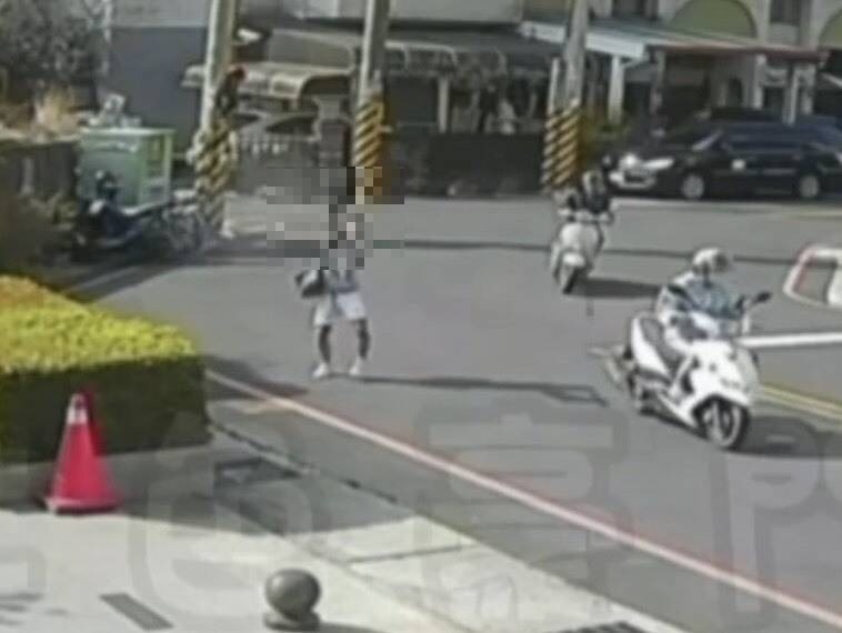 經過的機車騎士見狀驚慌躲避。(記者孫義方攝)