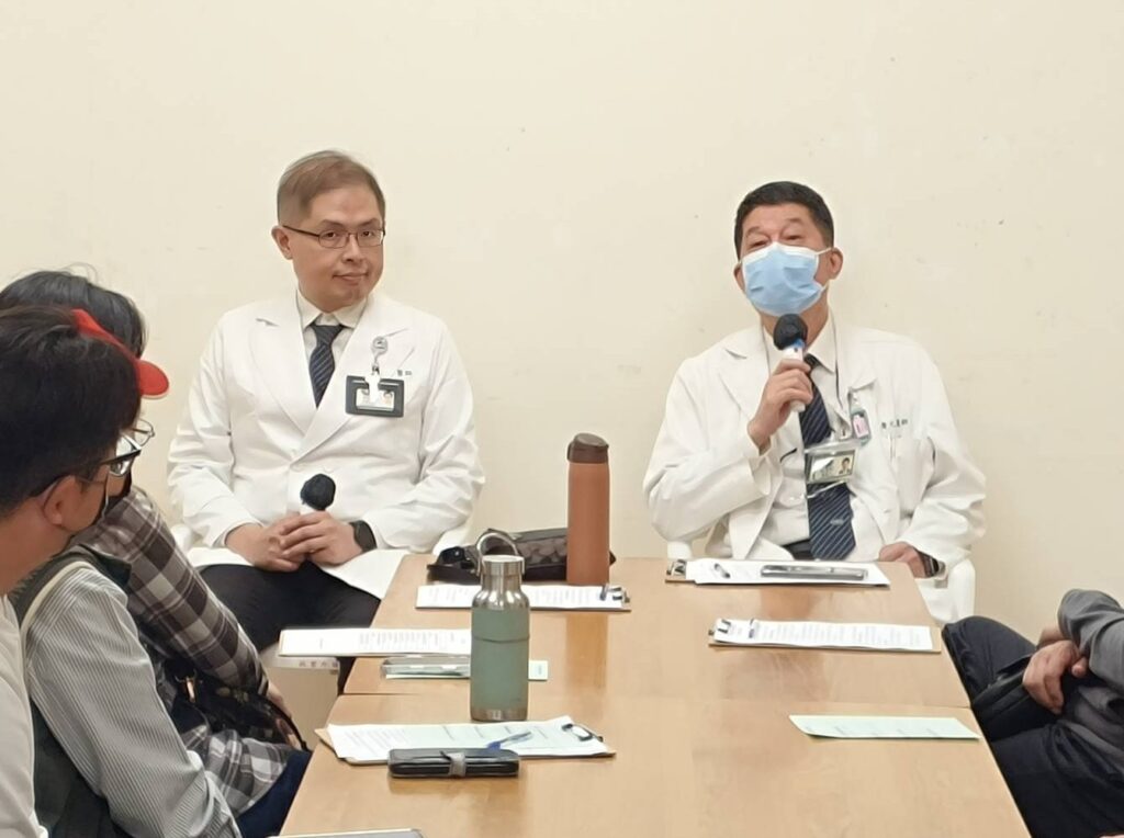 社區健康中心主任陳慶元(右)與身心醫學科主任許峰碩(左),到場鼓勵家屬並提供醫療專業對疑難問題的解決方法。(記者孫義方攝)