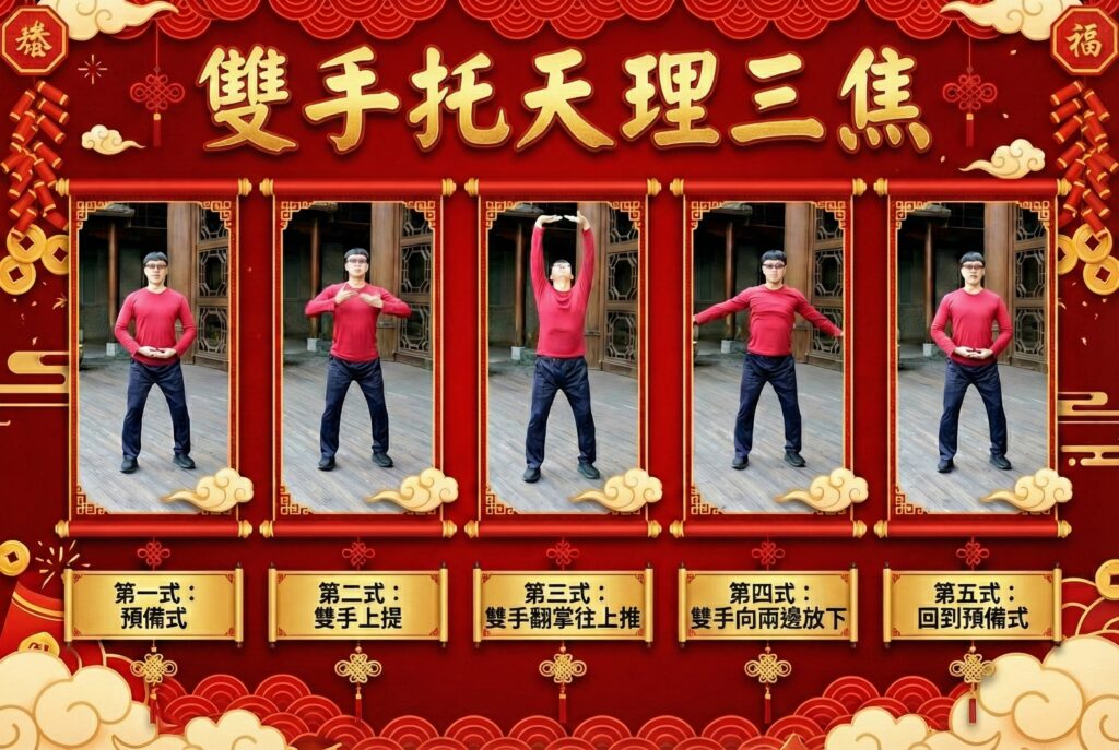 例如,「雙手托天理三焦」透過雙手向上伸展,有助延展脊椎並放鬆肩頸與上背;「左右開弓似射雕」左右開胸伸展可改善含胸、圓肩等姿勢問題;「五勞七傷向後瞧」往後回望的動作,則能舒緩因低頭使用手機造成的肩頸僵硬。此外,「兩手攀足固腎腰」前彎放鬆下肢的動作,有助促進下肢血液循環,減輕休假熬夜與飲食較油膩帶來的疲勞與腫脹感。