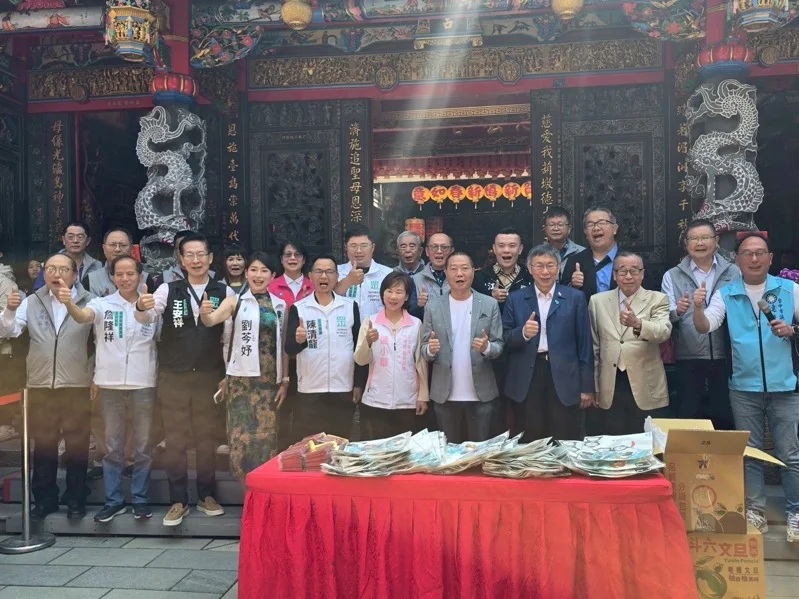 柯文哲為了民眾黨能夠如願在台中市力拚三席市議員,同時有意創建台中市議會黨部,全天以實際行動率小雞狂奔台中四區進香拜年,其中中午來到豐原慈濟宮一站時,更與國民黨台中紅派大老、前總府秘書長廖了以全程合體,凸顯藍白合。